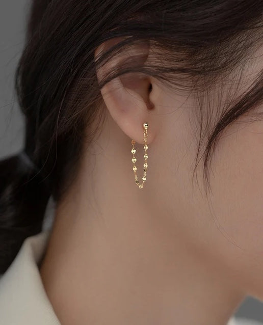 Introducing our stunning Gold Chain Fine Hanging Earrings, the perfect addition to any jewelry collection. These earrings are crafted from premium 925 sterling silver and coated with a radiant 18k gold, ensuring long-lasting shine and durability. The delicate chain design adds a touch of modern elegance, making them a versatile choice for any occasion.